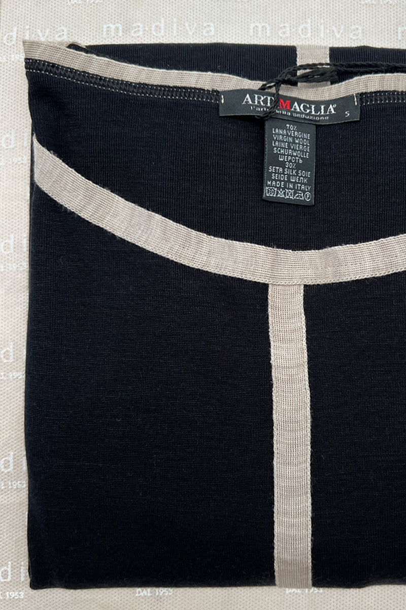 Barchetta da donna 838 04 in lana seta e bordi a contarsto - Manica lunga tutta in lana seta