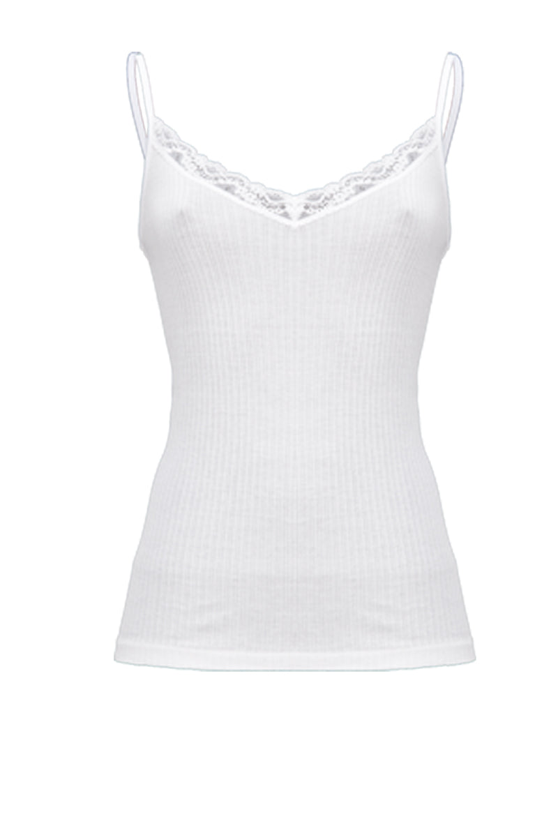 Canotta da donna Alissa in cotone - Spalla stretta Plissè con pizzetto elastico